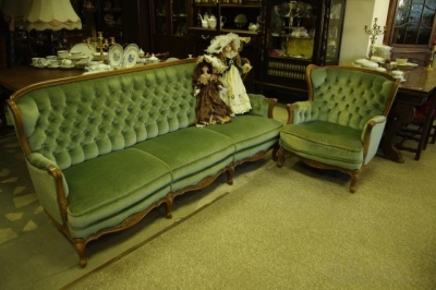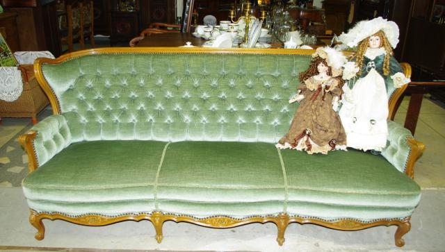 Žalio barchato antikvarinė sofutė