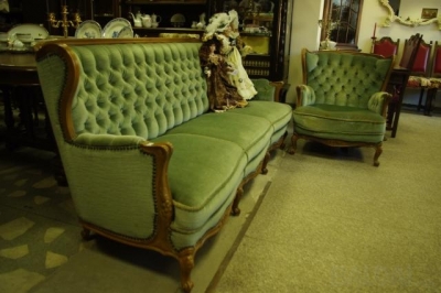 Antikvarinė trivietė sofa iš riešutmedžio