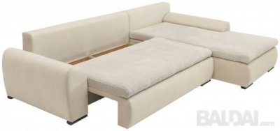 Kampas turi miegamą funkciją ir patalynės dėžę,keičiama kampo pusė. Ilga gulima vieta