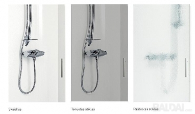 Kabinos stiklas.:skaidrus grūdintas;tonuotas;raštuotas.