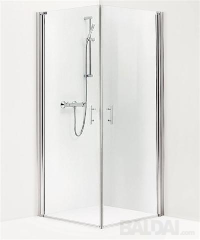 Suomijos firmos "IDO" dušo kabina su tiesiomis durimis,kurios atsiveria į vidų ir išorę; dydžiai: 800 x 800 mm; 900 x 900 mm; 1000 x 1000 mm/aukštis-1950 mm.